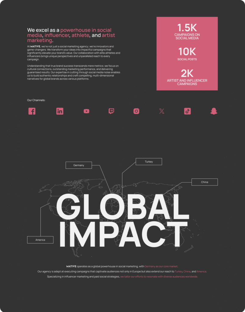 On the development side, I translated designs into a fully responsive, production‑ready site deployed on Webflow. Leveraging the CMS for dynamic portfolio and blog sections, I implemented custom CSS Grid layouts and Flexbox for seamless performance across breakpoints. Subtle Lottie animations and scroll‑triggered transitions enrich the user experience, while lazy‑loading images and SVG icon optimization ensure sub‑second load times. I integrated SEO best practices—semantic HTML, meta tags, and structured data—and added Google Analytics and Hotjar for ongoing performance and behavior tracking. The result is a polished, accessible (WCAG 2.1 AA) website that amplifies Mative’s brand story and drives engagement across desktop and mobile.
